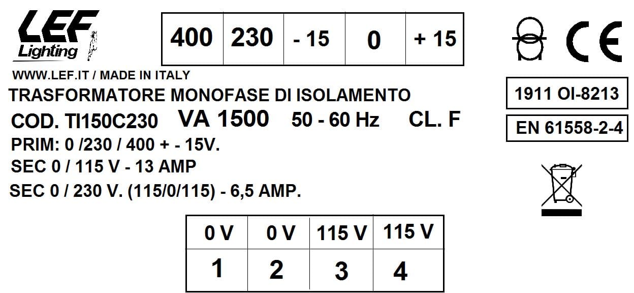 L.E.F. SRL - LEFTI150C230 T.M. 1500VA 230.400V / 115?230V