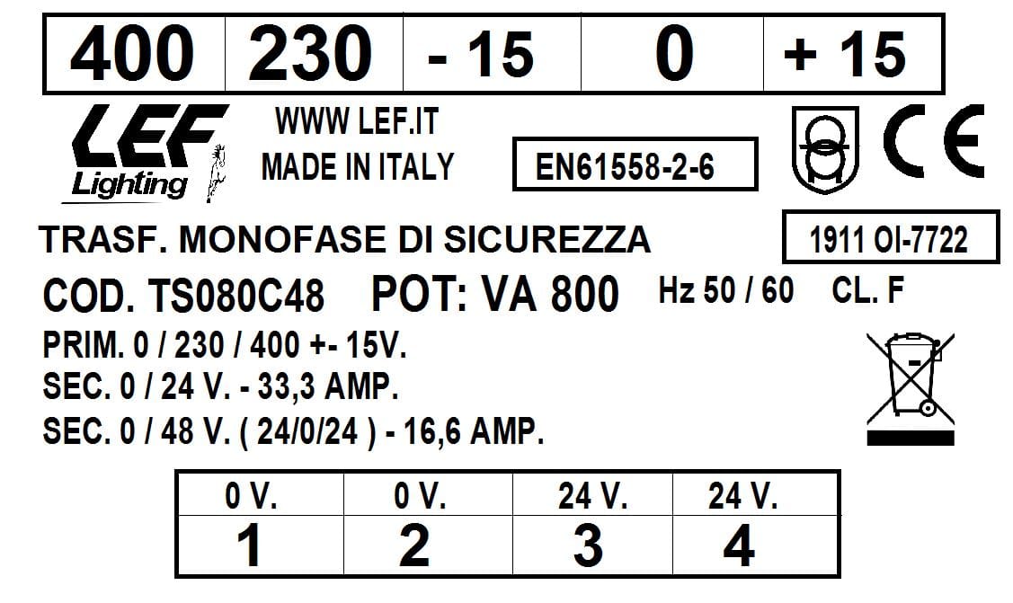 L.E.F. SRL - LEFTS080C48 T.M. 800VA 230.400V / 24?48V