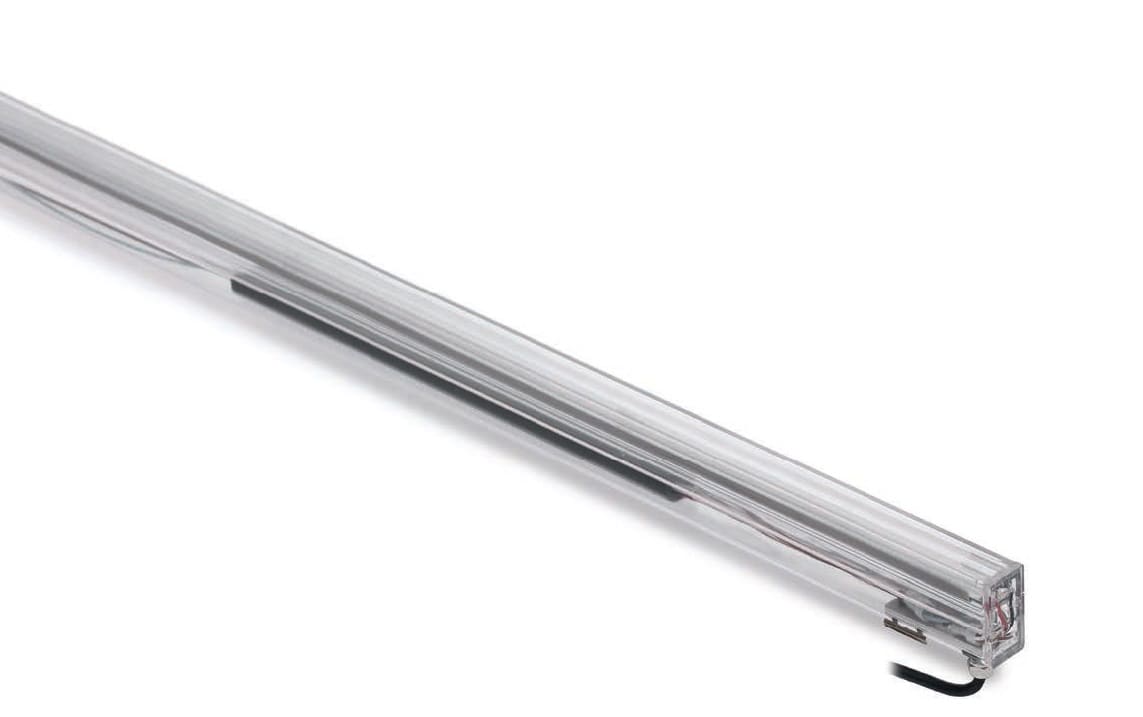 Dissipazione termica passiva: corpo diffondente in policarbonato. Luce continua: uscita dei cavi d'alimentazione dal lato inferiore, per potere creare linee luminose senza interruzioni. Installazione sequenziale di più apparecchi senza interspazi. Connettori per cablaggio rapido in IP67. Emissione wall washing. LED 13W 580 lm/m CRI75 bianco caldo. L: 1152mm. IK08.