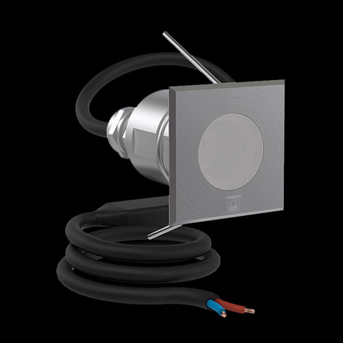 Adatto per installazioni a parete e controsoffittature in cartongesso, anche per uso esterno. Idoneo per incassi da terra ad uso calpestabile, carico max 500 kg, fissaggio mediante armatura da incasso fornita a parte. Prodotto finalizzato all’impiego disorgenti luminose a LED per luce di accento e segnalazione. Corpo e ghiere in acciaio AISI316L. Diffusore in vetro temprato. Guarnizioni in silicone. 1.5 m di cavo di alimentazione H05RN-F pre-cablato e bloccato tramite pressacavo in Ottone Nichelato. La molla di ritenuta si adatta sia per applicazioni che prevedono l'utilizzo di armatura da incasso che direttamente in controsoffittature in cartongesso. Dimmerazione disponibile. Bulloneria in acciaio inox A4 o AISI 316L. Versione in tensione 12/24 V: Tutti i cavi sono provvisti di una speciale guaina che protegge il faretto dalle infiltrazioni di acqua e umidità. Alimentatore escluso. Nessun rischio fotobiologico, RG0 gruppo di rischio esente (EN62471). Versione ghiera quadra, possibile scelta di 3 differenti ottiche. Temperatura massima rilevata sul vetro 65°C. Tipo lampada: 1 LED - 12/24 V 2W Blu. Versione a led senza alimentatore. Ottica: Diffuso.