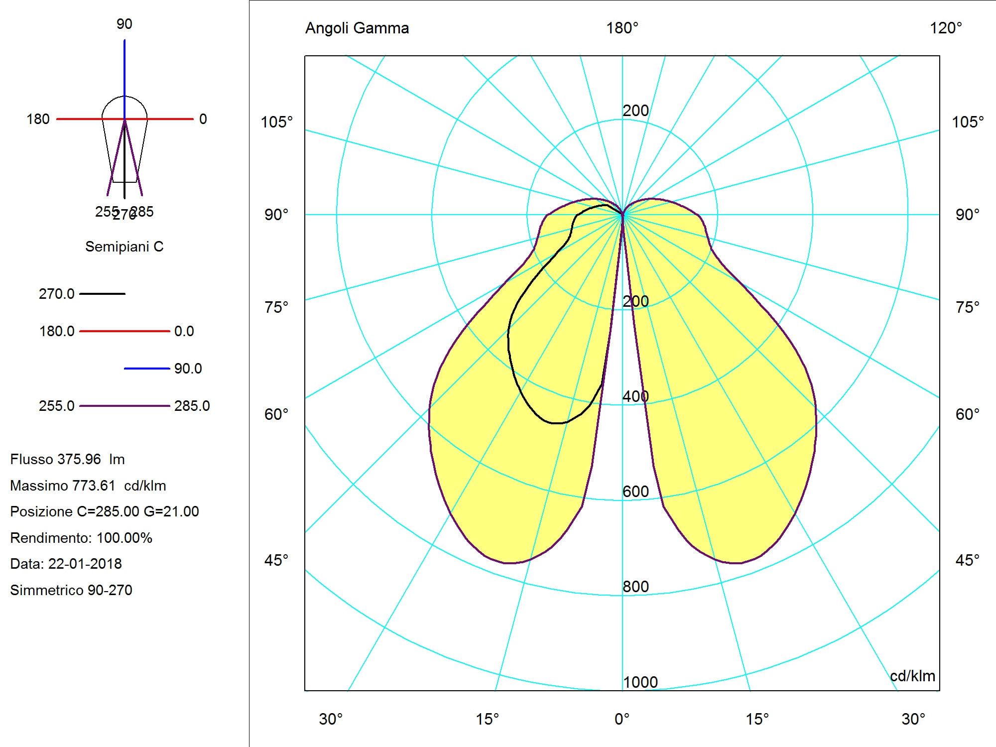 Flusso luminoso calcolato secondo la norma IEC 62722-2-1: