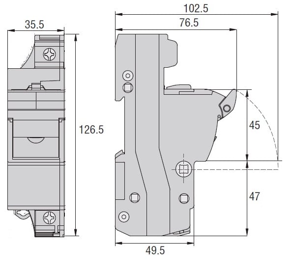 BASE PORTAFUSIBILI OMOLOGATA CURUS, PER FUSIBILI 22X58MM. CORRENTE NOMINALE 125A (690VAC), 1P. CON INDICATORE LUMINOSO. 1 MODULO