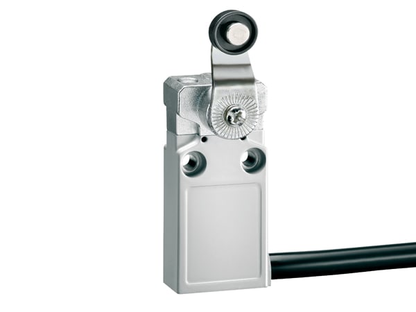 FINECORSA METALLICO PRECABLATO SERIE K, A LEVA CON ROTELLA, CONTATTI 1NA+1NC A SCATTO