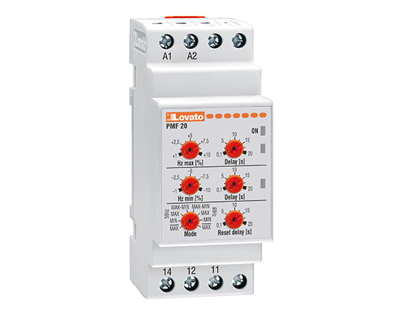 RELÈ FREQUENZIOMETRICO PER SISTEMA MONOFASE E TRIFASE, MINIMA E MASSIMA FREQUENZA, 380...415VAC 50/60HZ