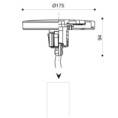 Coled round testapalo. Apparecchio per utilizzo su pali O60mm in testa con cartella max 3mm. Verniciatura a polvere con pretattamento specifi co per esterni. Cappello in pressofusione di alluminio anodizzato e verniciato. Diffusore in acrilico traslucido. Corpo in tecnopolimero rinforzato. Pressacavo PG9 con valvola osmotica anticondensa. Sistema di fissaggio al palo in acciaio zincato. Viteria in acciaio inox A2. 15W. 3000K. Grigio metalizzatto