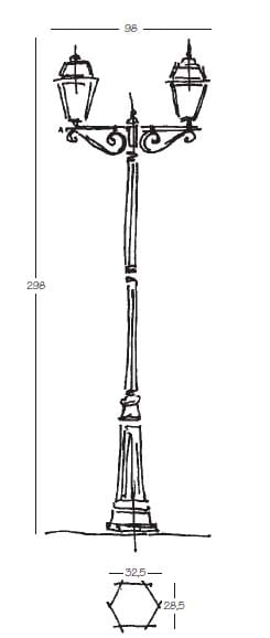 NOBILE ILLUMINAZIONE - NOB2056/09/02/NE LAMPIONE H298 2 LUCI OTTO VETRI NE