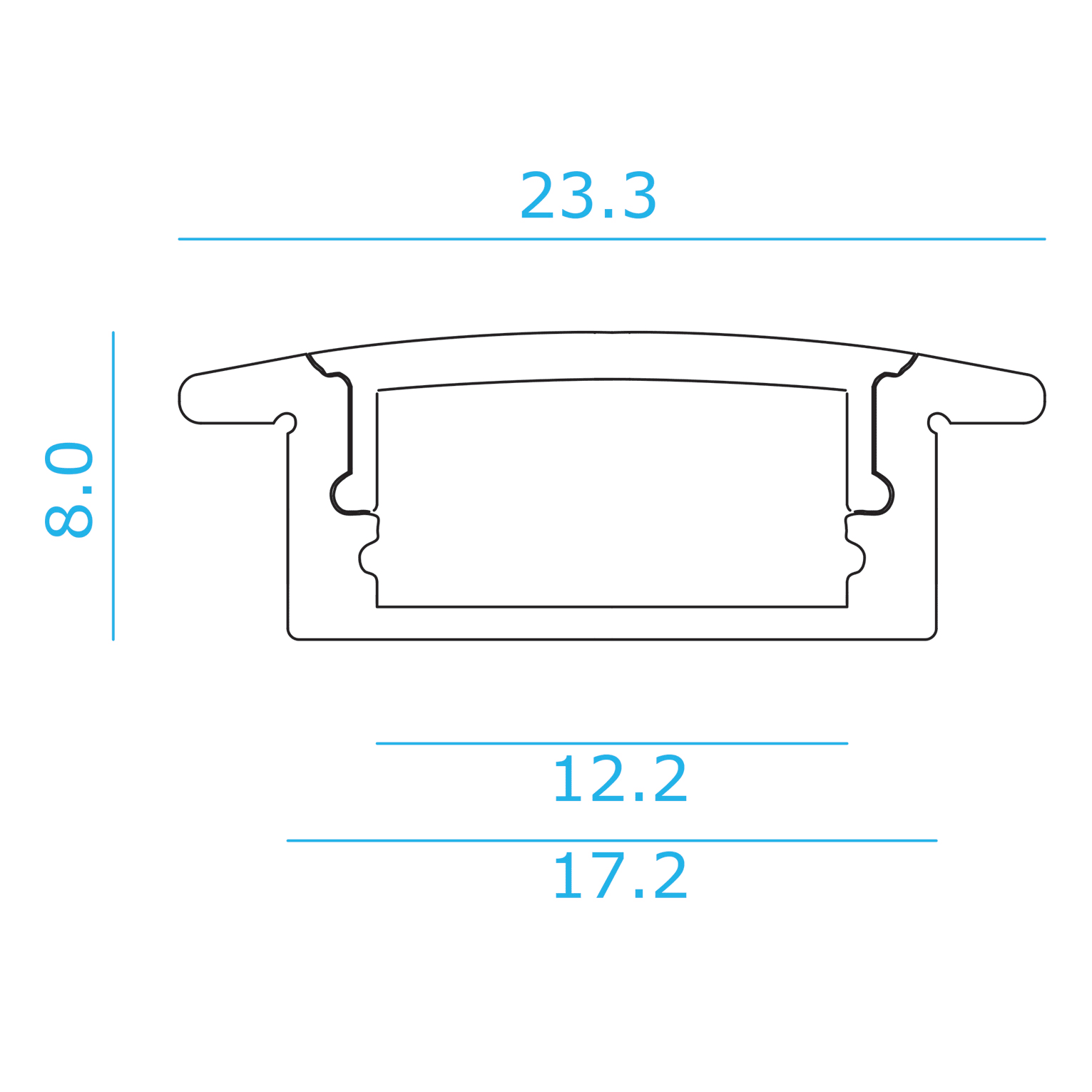 BARRA/STRIP/4/SW - Profilo in alluminio verniciato bianco da incasso per striscia LED con diffusore opale di 2m. Tappi (4 pz) inclusi. Forare il profilo per il fissaggio.