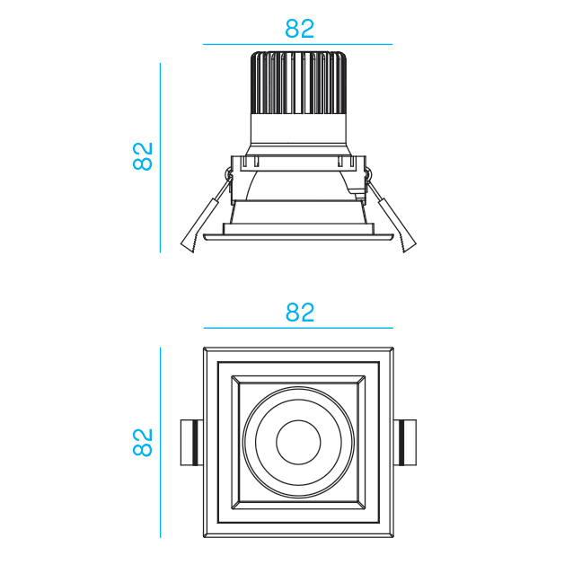 DUO QUADRO - Incasso LED quadro per installazione nel controsoffitto, completo di doppia cornice per due dimensioni di foro. LED CREE. Life time 50.000h (L80B10). Modulo in alluminio anodizzato. Modulo LED IP54. Riflettore nero in policarbonato, lente 55° in PMMA. Alimentatore 220-240V - 50/60Hz incluso. LED CREE 8,5W 688lm 2700K CRI 90.
