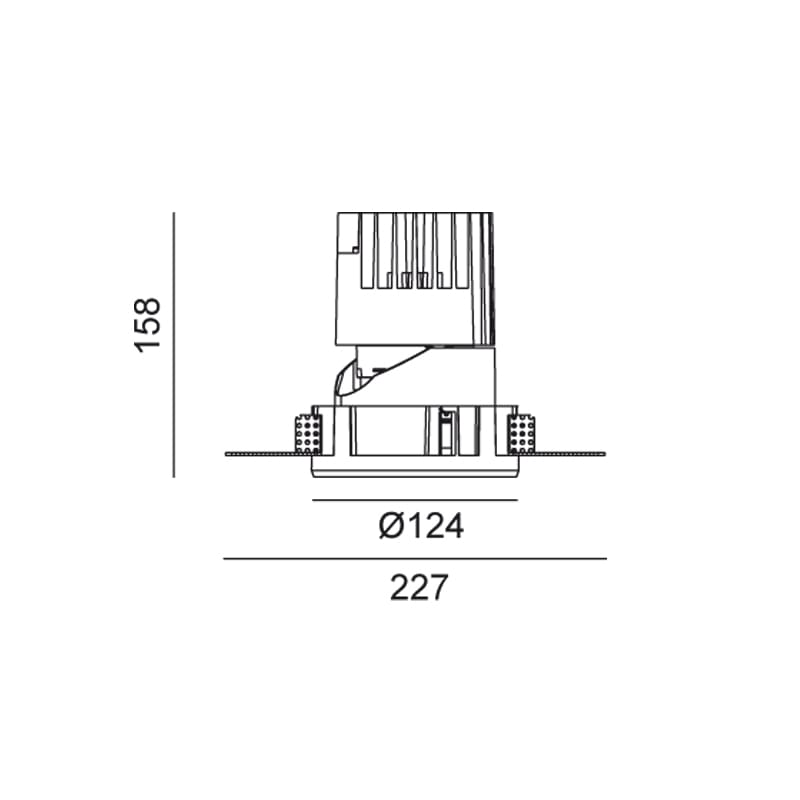 MODUS M2RF/T - Incasso fisso tondo a LED per installazione a soffitto. Life time 50.000h (rendimento 70%). Corpo in alluminio pressofuso. Cornice in alluminio verniciato bianco con staffe di fissaggio regolabili per soffitti di spessore diverso. Doppio sistema ottico con lente e riflettore migliora il comfort visivo. UGR<19 o UGR<16 a seconda del modello. Disponibili accessori intercambiabili: cornice trimless per soffitti di spessore 12,5 mm e 25 mm; riflettore in policarbonato in finitura bianco; griglia anti abbagliamento. Alimentatore 220-240V - 50/60Hz incluso, con driver DALI Made in Italy. LED COB CITIZEN 25W 2400lm 4000K CRI 90 - 40°.