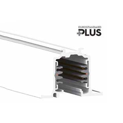 S1R - Binario ad incasso DALI elettrificato trifase di 1m (tensione di rete 230/250V - 16A) a 6 conduttori: 4 per modalità trifase, 2 per la gestione di un qualsiasi segnale (es. dali, dmx, lon, eib, ecc). Lunghezza 1m. Il sistema formato da n. 3 conduttori di fase + neutro permette di ottenere n.3 circuiti distinti per n.3 accensioni separate. Rete trifase: carico complessivo di 16A (10500VA), DALI 2X1A (100VA). Rete monofase: carico massimo di 16A (3500VA), DALI 2x1A. Accessori da ordinare separatamente. Normativa: EN 60570. Colore: bianco.