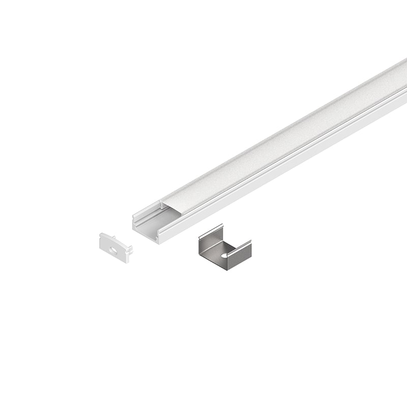 Profiled kit H9. Per installazione singola o a fila continua, a plafone, parete, "veletta". Profilo dissipante in lega di alluminio verniciato bianco. Testate di chiusura in polimero termoplastico. Schermo di protezione in PMMA opale. Staffe di fissaggioin acciaio. L: 2000mm. Colore: 01 bianco.