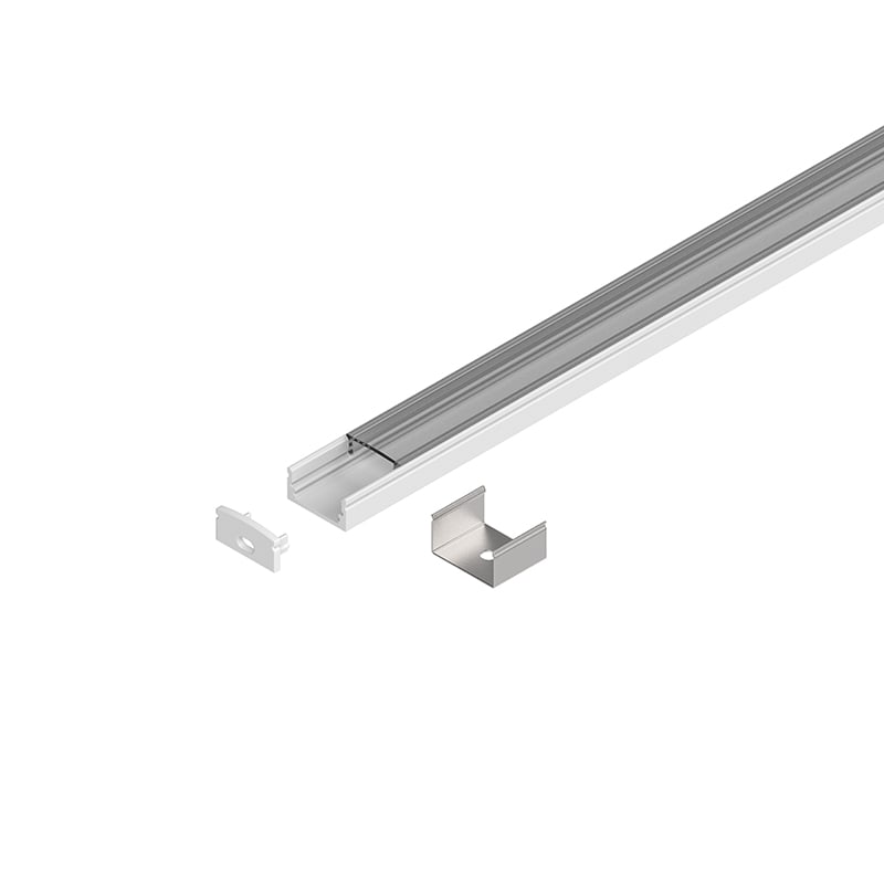 Profilo dissipante per Strip LED in lega di alluminio verniciata bianca, testate di chiusura in polimero termoplastico, schermo diffusore ad inserimento a scatto in PMMA trasparente. Schermo diffusore, testate di chiusura e n?4 staffe di fissaggio inclusi. Strip LED e alimentatore 24Vdc da ordinare a parte. Non esporre a intemperie o luce solare diretta e non inserire in materiale isolante.