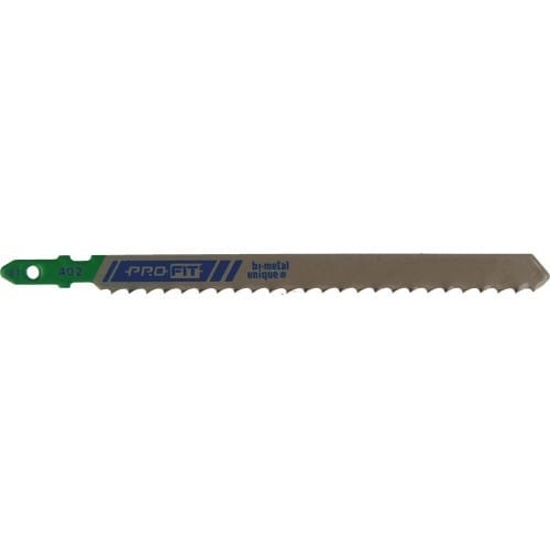 Lama 402 per il legno 100x7,5x1,3mm 6 Tpi, 5pz x blister. Taglio super veloce nel legno materiale con spessore 12-50 mm. Technologia BiMetal Unique unisce due strisce di HSS ad un rigido supporto di acciaio, utilizzando il sistema di saldatura per diffusione. Adattano a tutti i seghetti alternativi in commercio grazie al gambo universale