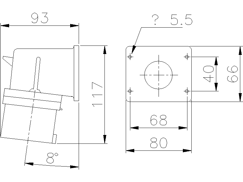 Spina fissa da parete a 90° protetta ad alte prestazioni bassa tensione