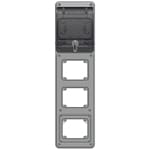 Quadro stagno serie topTER con portella trasparente ad alta capienza per installazione a parete di prese fisse IP 66. • N° prese installabili: 3. In dotazione kit guida DIN con supporti regolabili. Graffette fermacavo. Tappi coprivite per doppio isolamento. Kit cerniere per apertura a sportello. Schemi coprimoduli. N. 2 flange di chiusura