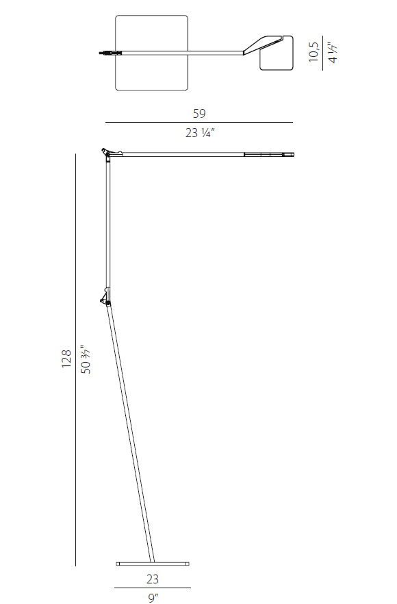 Apparecchio di illuminazione da terra per installazione in ambienti interni, con fascio orientabile. Base di appoggio in lamiera decapata con verniciatura poliacrilica. Struttura in alluminio estruso con verniciatura poliacrilica in colore nero. Snodi inalluminio pressofuso con verniciatura poliacrilica. 10W. 526 lm. 3000K. Elettrificazione dimmerabile (Step DIM)