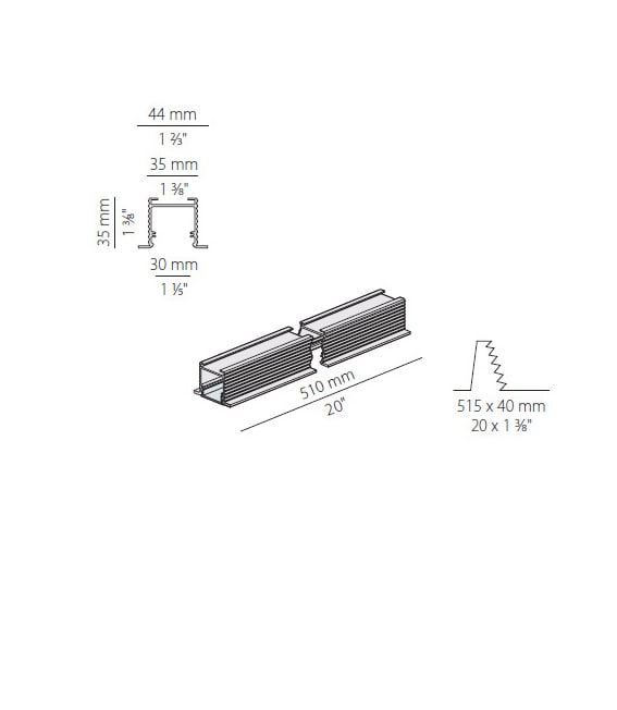 Profilo componibile per installazione incassata a soffitto o parete in ambienti interni, con emissione diretta. Struttura per l'incasso in cartongesso, in alluminio estruso con verniciatura a polvere in colore bianco RAL 9003. Schermo diffusore in policarbonato estruso con finitura opalina. Moduli luminosi e alimentatore da ordinare separatamente. Accessori di fissaggio, giunzione e chiusura da ordinare separatamente. Dimensione del foro di incasso: 515x40mm (40x1,6"). Potenza assorbita dal sistema max 46W/m. Sorgente luminosa LED. Distribuzione luminosa fascio diffuso. Alimentazione 24V DC. Driver remoto non incluso. Peso 0,6650Kg. Grado di protezione IP40.