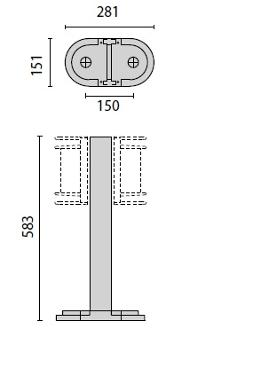 Palo 21 H550 costituito da: Palo in alluminio estruso verniciato predisposto per alloggiare uno o due apparecchi. Base di fissaggio a terra in alluminio pressofuso verniciato. Scatola di derivazione in alluminio pressofuso con morsetto a 4 poli 4 mm2 predisposta per collegamento in cascata. Colore: Antracite.