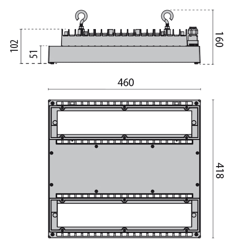D (per montaggio in impianti industriali con pericolo di incendio per polvere o fibre EN 60598-2-24):