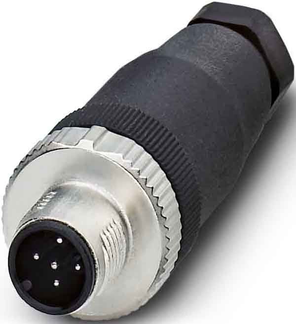 Connettori, 8-poli, Maschio diritto M12, codifica A, Connessione a vite, Materiale zigrinato: Pressogetto di zinco, nichelato, Connessione a vite per cavo Pg11, Diametro esterno cavo 8 mm ... 10 mm