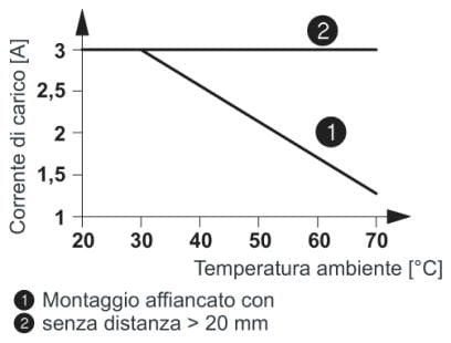 Range di temperature da -25 °C a +70 °C. Campo tensione di ingresso 0,7-1,25 x UN.