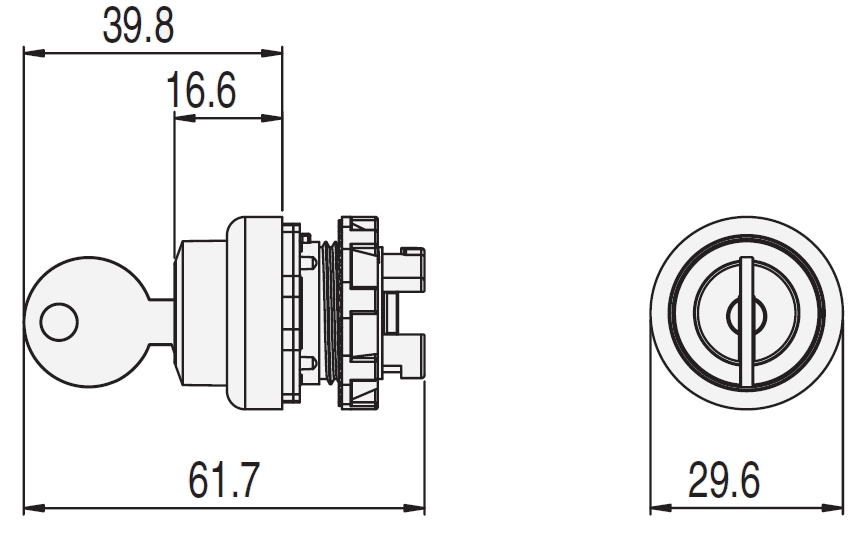 Selettore a chiave a 2 posizioni • Temperatura ambiente -25°C +80°C • Durata meccanica: 0,3 milioni di cicli di operazioni • Frequenza massima di azionamento: 3600 cicli di operazioni/ora • Conformità alle norme: IEC 60947-1, IEC 60947-5-1, IEC 60204-1, EN 60947-1, EN 60947-5-1, EN 60204-1, UL 508, CSA 22-2 N°14