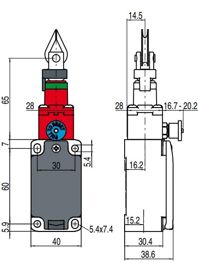 Interruttore di sicurezza a fune con reset per arresti di emergenza. Custodia: Custodia in tecnopolimero, una entrata cavi filettata PG 13,5. Unità di contatto: 2NC scatto lento (B34). Testa: A fune con reset per arresti d'emergenza. Grado di protezione:IP67 secondo EN 60529. Apertura positiva: Sì