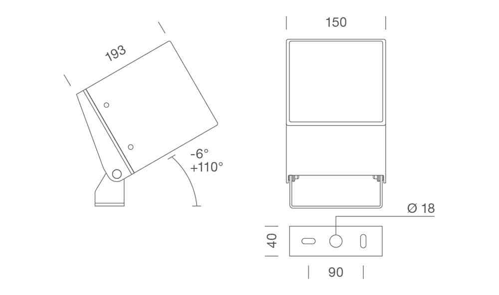 ONE Proiettore - Vetro trasparente - 9 LED 3000K - Corpo e base realizzati in lega di alluminio pressofuso verniciato e resistente alla corrosione. Protezione con trattamento di anodizzazione, fondo con polveri epossidiche e verniciatura poliestere. Assenza di viti a vista. Apertura di fascio: Largo 45°. LED COB Bianco 20,5 W 2250 lm 3000K. Finitura grigio.