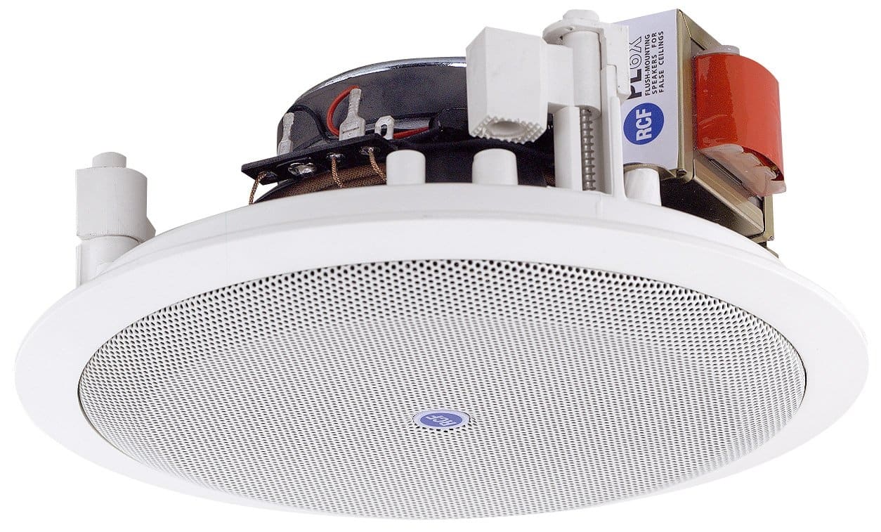 Diffusore acustico a plafoniera dal design elegante ed esclusivo, indicato per essere installato ad incasso in controsoffittature o pannelli. Impiega altoparlante da 160 mm-6” con tweeter coassiale da 25 mm (1”) montato su un supporto a ponte. È corredato di un trasformatore di linea che consente il collegamento diretto ad impianti a tensione costante a 70 V o 100 V. Grazie alle prese multiple del trasformatore di linea è possibile selezionare la potenza da diffondere fra diversi valori disponibili. L’installazione a soffitto è semplice e veloce grazie ad un particolare sistema a tre ganci rotanti che evita l’impiego di viti e tasselli o altri elementi di fissaggio.
