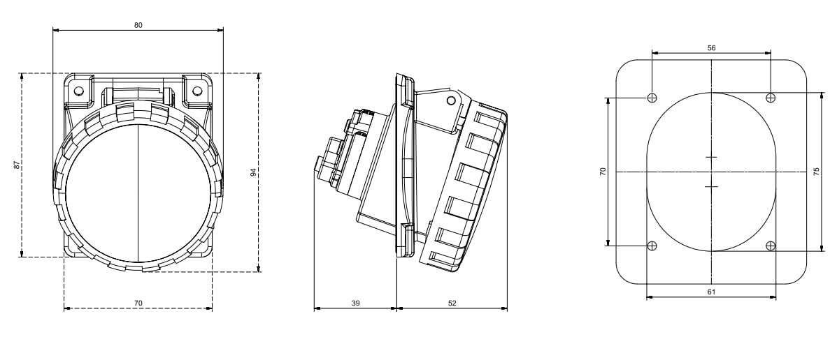16A 3P+T 9h 200-250V 50Hz - 60Hz 70X87MM Morsetti a vite