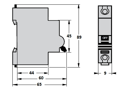 Contatto di segnalazione posizione, da montare sul lato sinistro dell'interruttore. Indica il contatto di posizione alla chiusura di un contatto NA e all'apertura di un contatto NC.