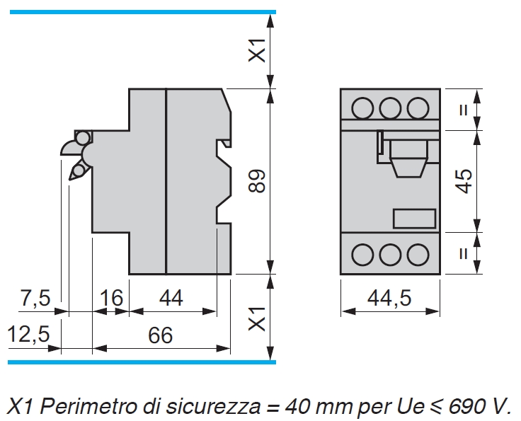 Potere di interruzione nominale estremo in corto circuito Icu 400V AC: