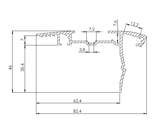 SIRIOprofile Stair -Twist-moquette con doppia copertura (non compresa nel prezzo) - SIRIOprofile Stair -Twist-moquette è dedicato all’illuminazione di gradini ma è specifico per quelli ricoperti di moquette, il cui spessore è compreso tra 4-10 mm. La suacaratteristica principale è la luce diretta verso il basso lungo le scale e la luce superiore soffusa dall’alto. La luce superiore sottolinea il bordo del gradino, mentre la luce inferiore illumina il gradino successivo. In entrambi i casi la luce è morbida e senza punti LED visibili. La cover della parte superiore può essere sostituita con una guarnizione in gomma antiscivolo, come opzione di finitura. Le possibili applicazioni riguardano l’illuminazione di scale nei cinema, negli alberghi o in altri luoghi dove l’illuminazione è ridotta al minimo,come il profilo STAIR TWIST classico. Finitura in alluminio anodizzato. Copertura superiore, applicabile ad incastro con un semplice click, bianca inPMMA, questo materiale estremamente resistente è utilizzatoappositamente per prevenire l’ingiallimento e l’invecchiamento della copertura. Cover frontale applicabile ad incastro con un semplice click, bianca (punti LED mascherati). Dimensione: 2000x82,4x46mm.