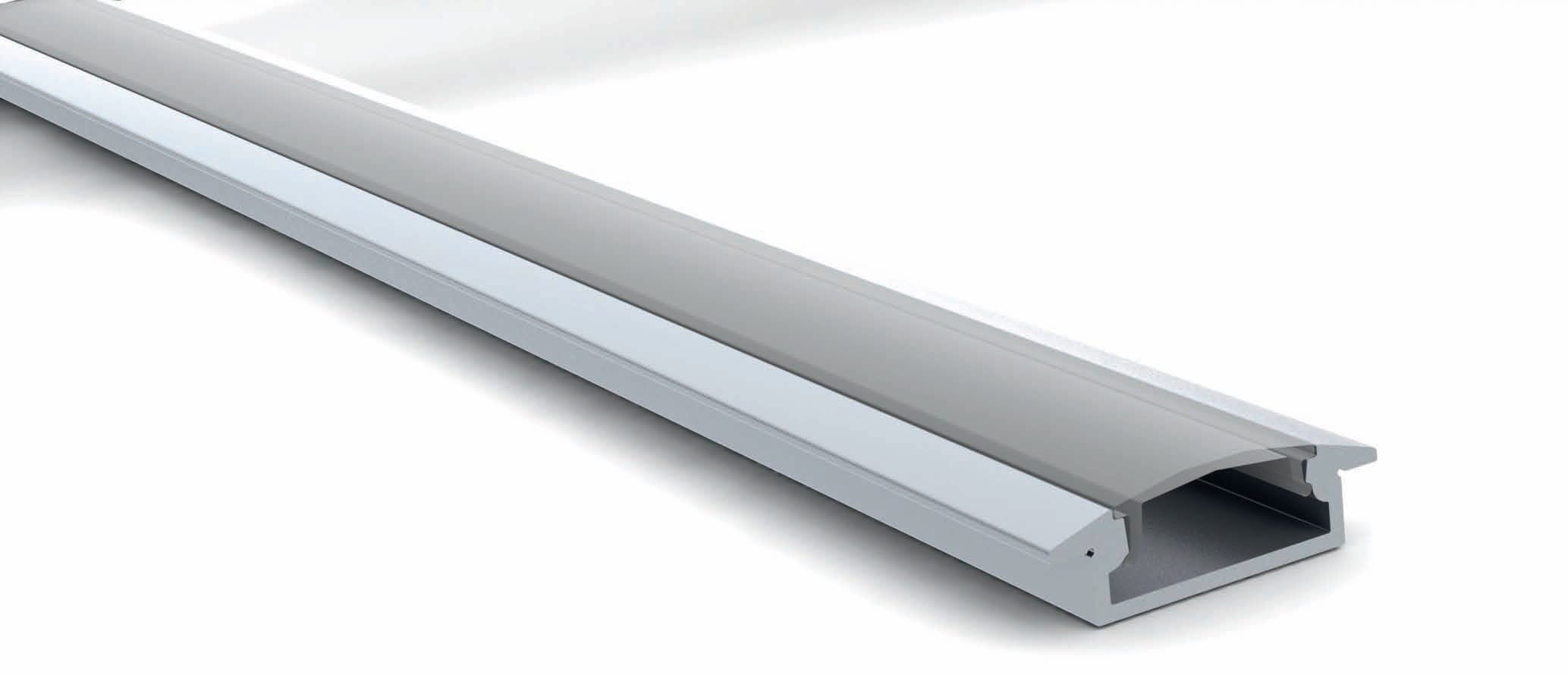 Profilo in alluminio da incasso con larghezza maggiore rispetto al SIRIOprofile I7 (20mm) con diffusore in policarbonato (rimovibile). La copertura è resistente ai raggi UV, calpestabile e disponibile in diversi modelli. Adatto all’utilizzo con strip di bassa potenza. Applicazioni: Incasso sottopensile. Illuminazione scaffali. Luci d’accento.Stand espositivi.