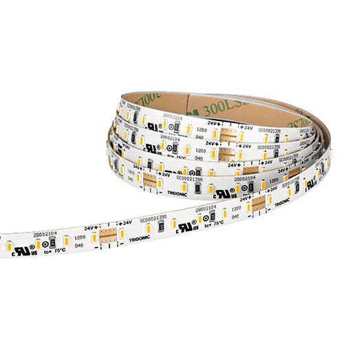 LLE FLEX G1 8x4800 5W-600lm/m 830 SNC - Striscia LED a tensione costante 24 V, dimmerabile (SELV). Ideale per molti tipi di illuminazione decorativa: accenti su facciate, emissione indiretta su soffitto, inserimento in modanature o profili di alluminio .Flusso luminoso di 600 lm/m. Temperatura di colore 3000 K con SDCM 3. Efficienza modulo fino a 125 lm/W con tp = 65 °C. Opzioni di taglio a passi di 5 cm per una grande libertà di design. Interasse punti luce di 8,3 cm per una luminosità molto omogenea. Autoadesivo 3M sul lato posteriore, per fissaggio veloce su varie superfici. Raccordi PCB e cavi per innesti, per giunzione rapida e s enza utensili. Lunga durata, fino a 50.000 ore. 5 anni di garanzia. Soluzione in abbinamento al driver LED Tridonic a tensione costante (fixed-Output e dimmerabile). Caratteristica del fascio 120°. Temperatura ambiente -25...+45 °C. Tensione alimentata in DC 24 V. Range tensione alimentata in DC 21,5 – 26,4 V. IP00 .