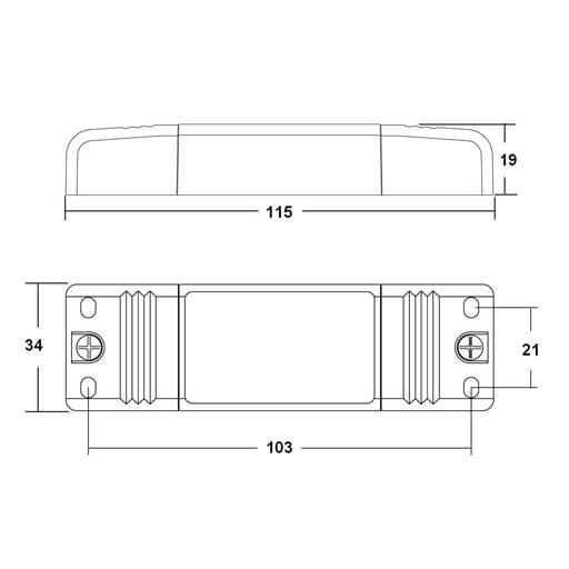 Corpo in materiale termoplastico. Colore: Bianco.Alimentatore: alimentatore remoto per diodi LED, uscita stabilizzata 350mA dc.
