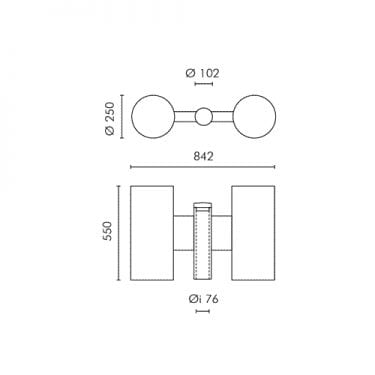 Corpo in alluminio primario estruso EN AW-6060 e pressofuso EN AB-47100 ad elevata resistenza all'ossidazione. Lavorazione di burattatura per la preparazione alla fase di verniciatura. Viti in acciaio INOX A4 a forte tenore di molibdeno 2,5-3%. Guarnizioni in silicone ricotto. Riflettore asimmetrico in alluminio puro al 99.98%. L'emissione di luce verso il basso è nel pieno rispetto delle leggi contro l'inquinamento luminoso. Vetro trasparente di protezione temprato di spessore 8 mm. Sorgente luminosa, con posizione lampada fissa. Rendimento 55%