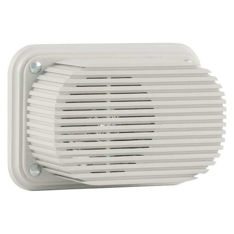 Sirena elettronica in ABS autoestinguente. Multisuono, 5 tonalità (lineare, modulato, bitonale, pluritonale)