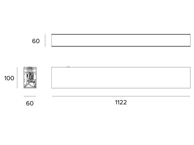 Apparecchio lineare a LED stand alone per installazione a plafone o a sospensione. 24W. 3480 lm. 3000K. L=1122 mm. Ottica opale. Emissione diretta. Colore Nero. DALI