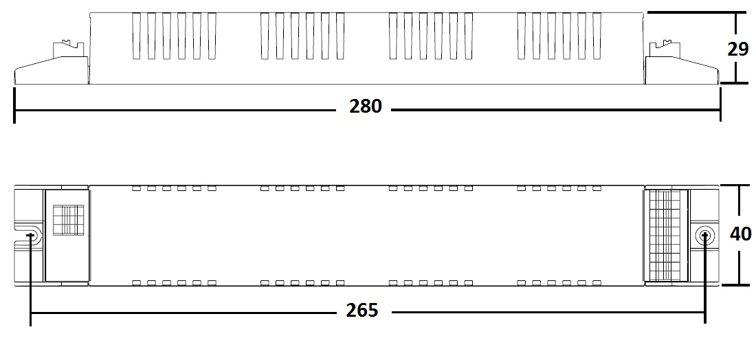 Alimentatore elettronico da incorporare. Adatto al collegamento con apparecchi di emergenza in base alla EN 60598-2-22. Morsetti ad innesto rapido. Morsetti di entrata ed uscita contrapposte (sezione connettori: 0,5÷1,5 mm2). Fissaggio dell’alimentatore tramite asole per viti. Accensione con preriscaldo per una lunga durata della lampada. Protezioni: extra tensioni di rete; disconnessione della lampada; lampada guasta; lampada fine vita. Classificazione EEI = A2.