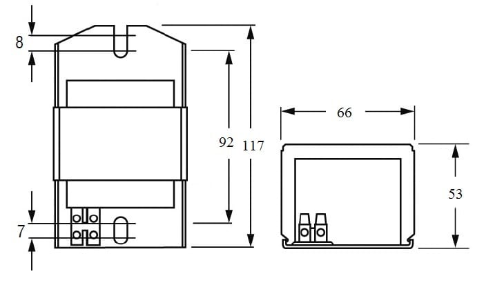 Alimentatore ferromagnetico da incorporare, classe I. • Resinatura in poliestere sotto vuoto. • Protezione termica. • Temperatura limite di avvolgimento Tw 130°C. • Morsetti ad innesto rapido per cavi di diametro 0,5 - 1,5 mm2 . • Morsetti a vite per cavi di diametro 0,5 - 2,5 mm2.