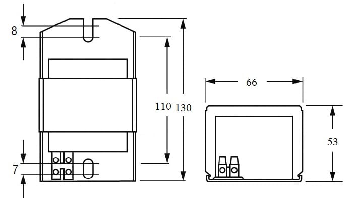 Alimentatore ferromagnetico da incorporare, classe I. • Resinatura in poliestere sotto vuoto. • Protezione termica. • Temperatura limite di avvolgimento Tw 130°C. • Morsetti ad innesto rapido per cavi di diametro 0,5 - 1,5 mm2 . • Morsetti a vite per cavi di diametro 0,5 - 2,5 mm2.