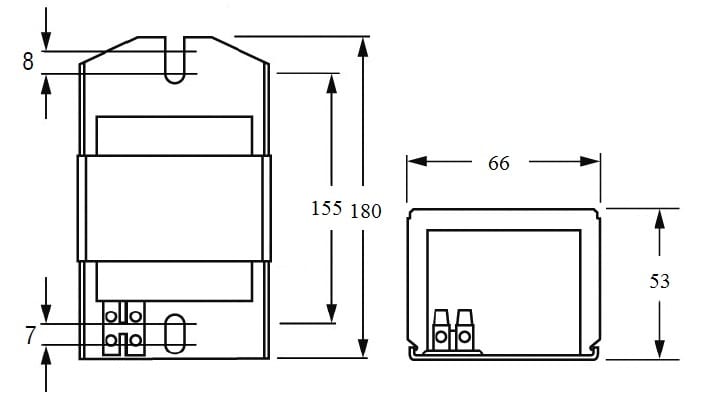 Alimentatore ferromagnetico da incorporare, classe I. • Resinatura in poliestere sotto vuoto. • Protezione termica. • Temperatura limite di avvolgimento Tw 130°C. • Morsetti ad innesto rapido per cavi di diametro 0,5 - 1,5 mm2 . • Morsetti a vite per cavi di diametro 0,5 - 2,5 mm2.
