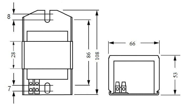Alimentatori ferromagnetici da incorporare, classe I. • Resinatura in poliestere sotto vuoto. • Temperatura limite di avvolgimento Tw 130°C. • Morsetti a vite per cavi di diametro 0,5 - 2,5 mm2.