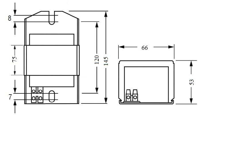 Alimentatori ferromagnetici da incorporare, classe I. • Resinatura in poliestere sotto vuoto. • Temperatura limite di avvolgimento Tw 130°C. • Morsetti a vite per cavi di diametro 0,5 - 2,5 mm2.