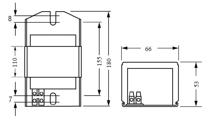 Alimentatori ferromagnetici da incorporare, classe I. • Resinatura in poliestere sotto vuoto. • Temperatura limite di avvolgimento Tw 130°C. • Morsetti a vite per cavi di diametro 0,5 - 2,5 mm2.