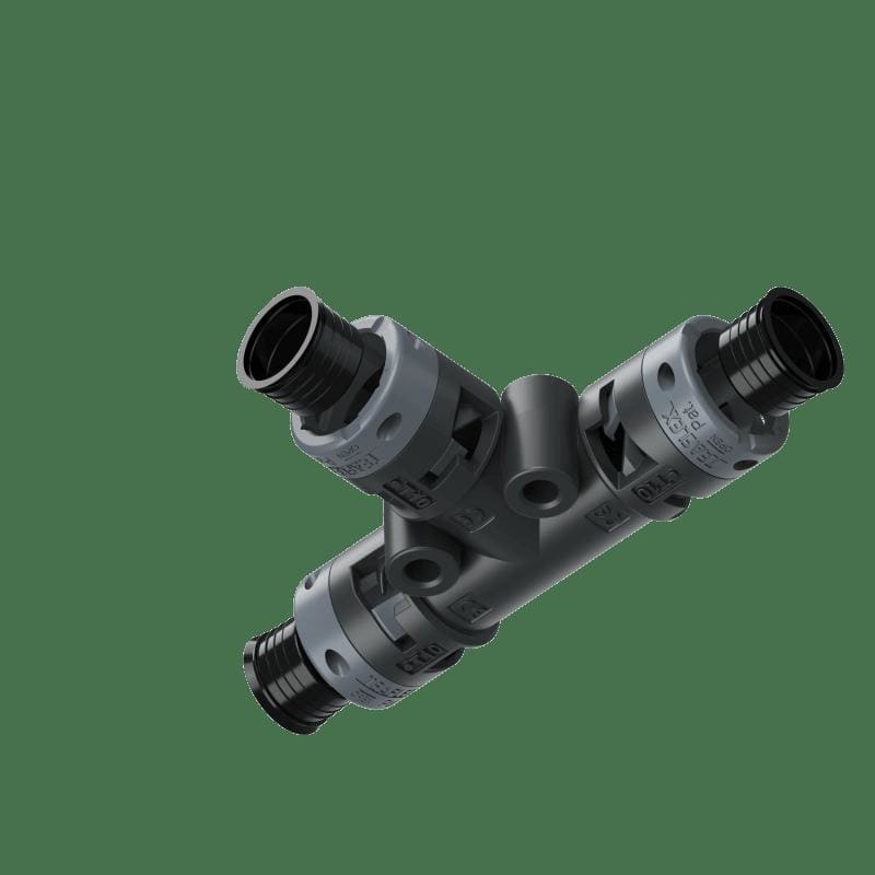 I raccordi di distribuzione della serie T sono stati progettati con lo specifico intento di dividere fasci di cavi in linee di derivazioni multiple. La forma a T permette l’inserimento e l’uscita dei cavi da qualsiasi ingresso del raccordo consentendo collegamenti in linea e a 90°. Soddisfano i requisiti standard nelle installazioni elettriche industriali e nelle applicazioni tecniche ad elevate prestazioni nell’industria pesante e nel settore ferroviario.