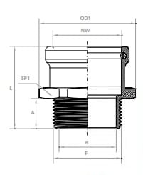 TEAFLEX - TEAFIM32M32X316 RACC.INOX FIM32 M32X1,5AISI316