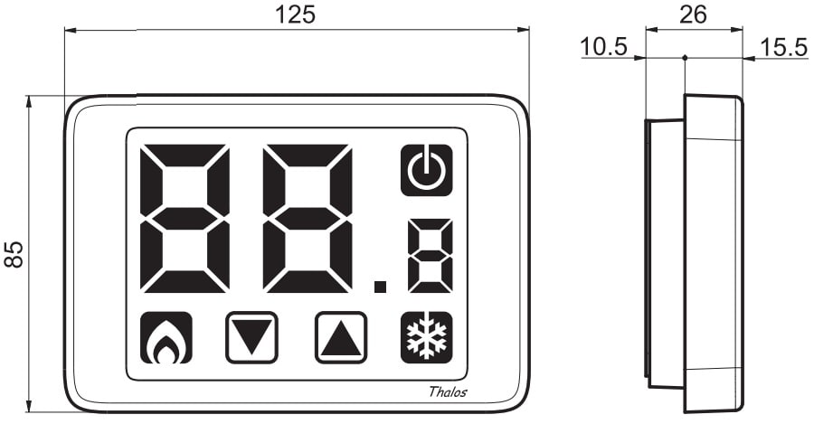 Termostato touch screen da parete e alimentazione a batteria. La tastiera touch screen è rappresentata da 2 icone che, unita al display con retroilluminazione blu (attiva al tocco di un tasto), garantisce al prodotto eleganza e sobrietà. La funzione “blocco tastiera” con password, utile ad esempio per installazioni in luoghi pubblici, impedisce modifiche delle impostazioni a persone non autorizzate. L’ingresso digitale consente il collegamento di un dispositivo esterno con il quale ridurre il setpoint di3°C.
