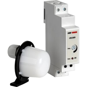 Interruttore crepuscolare in contenitore 1 modulo DIN con sonda esterna posizionabile a distanza. • Alimentazione: 230V AC 50/60 Hz • Sensibilità: 10 ÷ 100 lux • Uscita: 1 relè normalmente aperto 16A / 250V AC • Carico collegabile: - Lampade Incandescenza 2000 W - Lampade Fluorescenti 400 W
